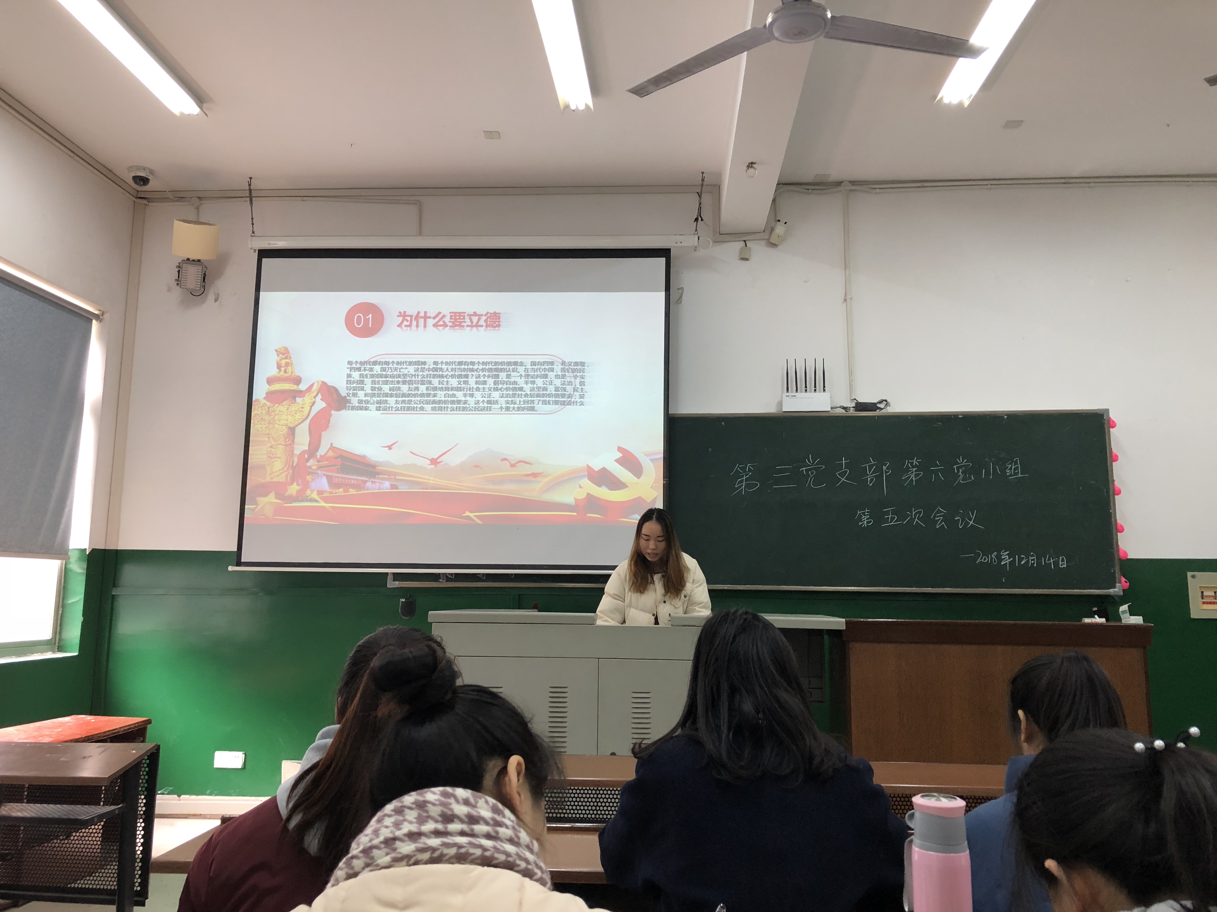(通讯员 谢颖 陈晓琪)12月14日中午,党支部第六党小组在教学楼201教室召开了第五次专题学习会议。本次学习的主题是“南京之痛,国之痛”与“国无德不兴,人无德不立”,本次会议由朱丹琳主持。