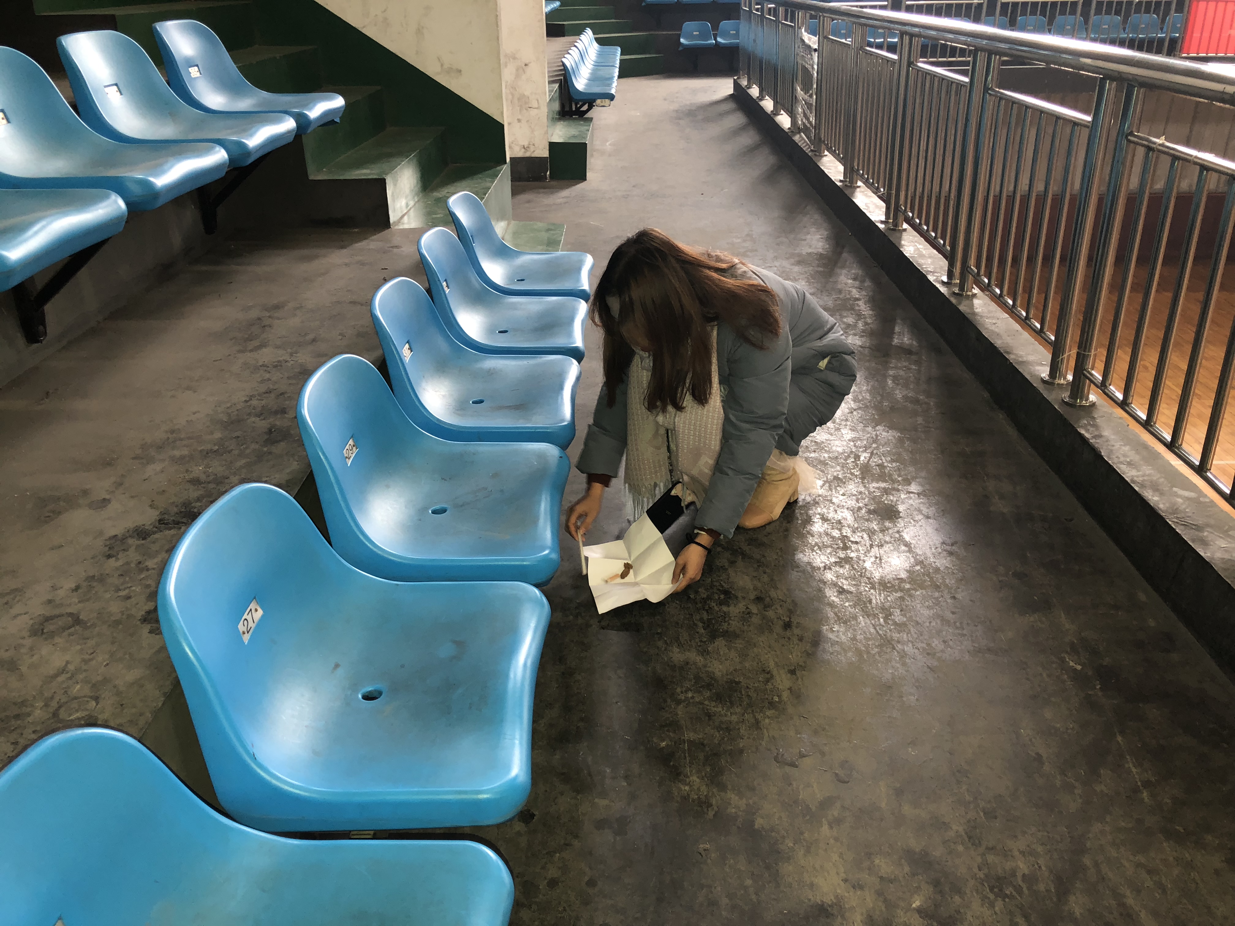 活动开展前,组长召开组员动员会议。会后,小组成员认真务实,细心地清理篮球馆每一个角落。其中组员发现,同学们的环保意识比较薄弱,篮球馆的公共卫生还有待进一步提高。