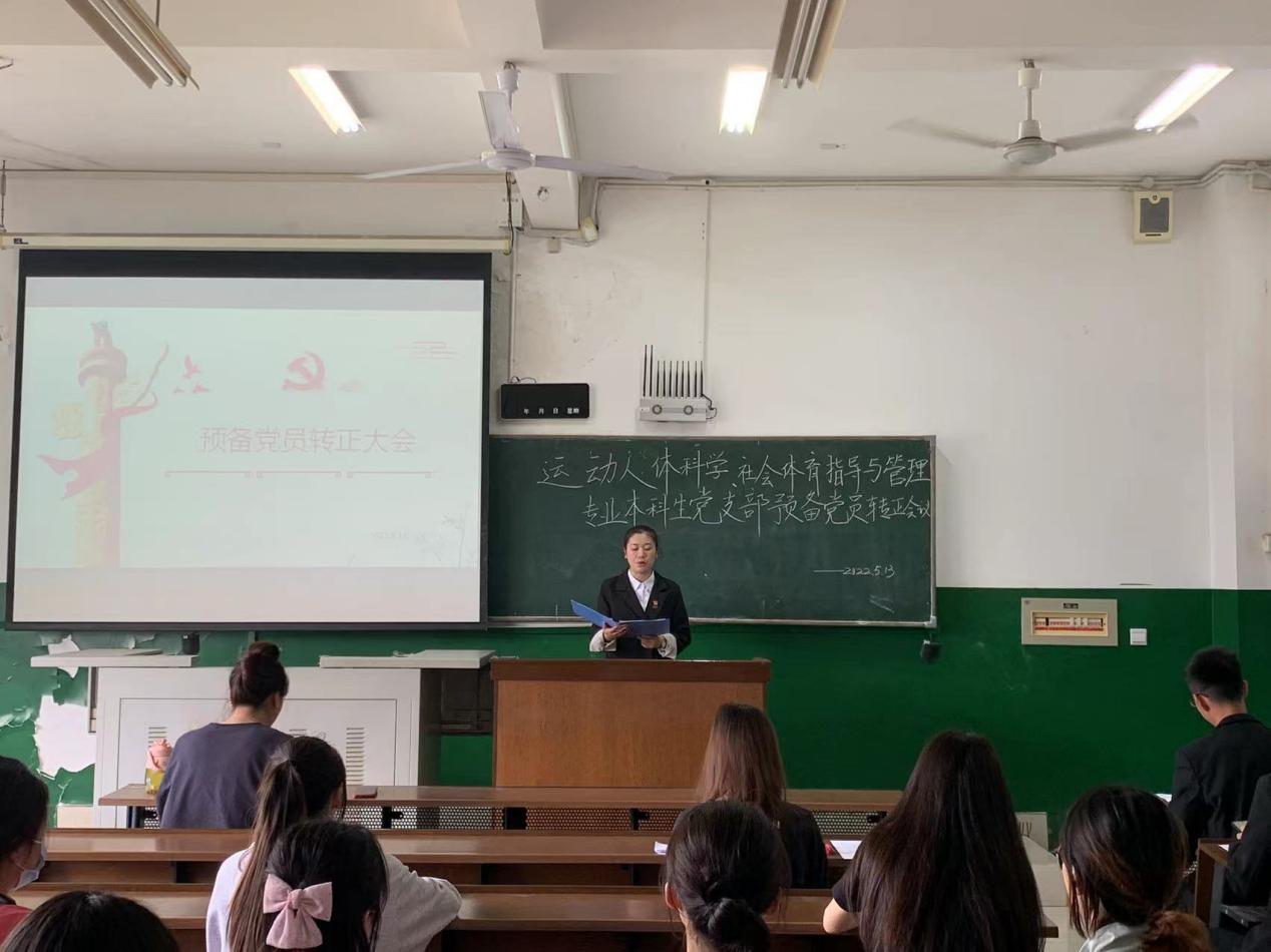 (通讯员刘忠荣)5月13日,公司在鸿健楼405教室召开运动人体科学、社会体育指导与管理专业本科生党支部预备党员转正会议。运动人体科学和社会体育指导与管理党支部书记李丽、2018级辅导员陈玲出席此次会议,支部全体成员参加此次会议。会议由预备党员张莎主持。