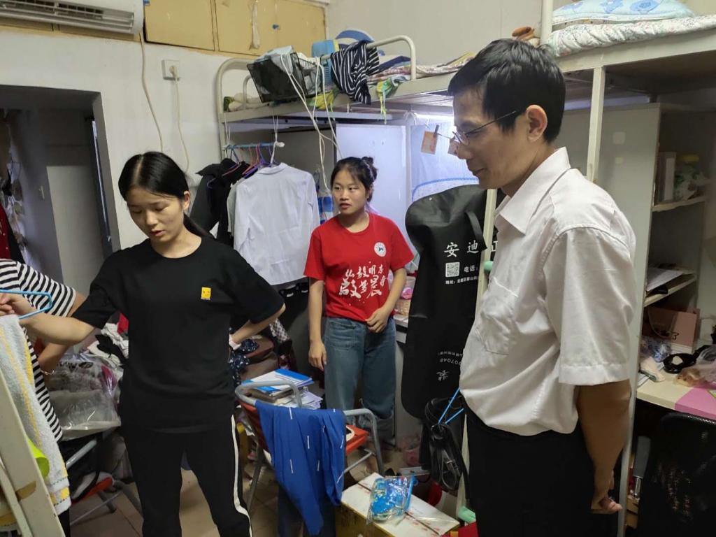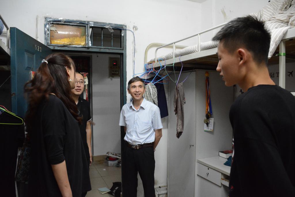 李明辉在检查卫生的同时细心检查寝室存在的问题,并对2015级毕业生的就业情况作了一定的了解。他的关心和问候体现了学院对广大学子的关爱。