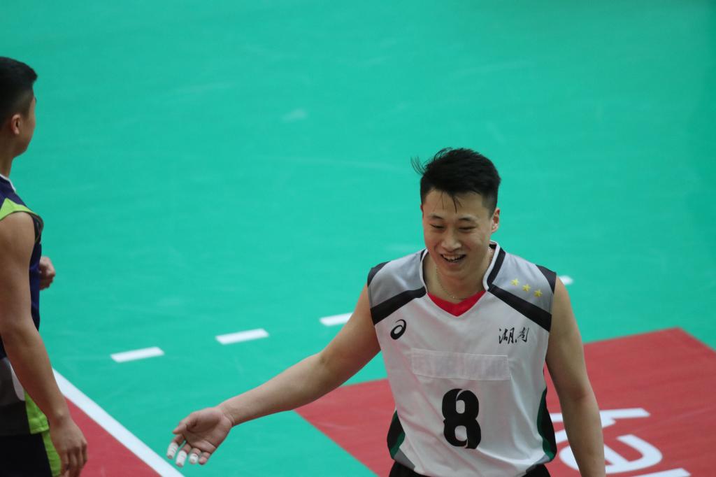 决胜局的比赛不仅仅是技战术的较量,更是两队队员意志的比拼。决胜局一开始,两队互不相让,比分交替上升,两队教练通过暂停、换人的方式不断掌控和改变着比赛节奏,场面异常焦灼,直至双方交换场地。交换场地后,公司男排咬紧牙关利用一切手段连续得分,最终公司男排以18:16的比分拿下比赛,以总比分3:2艰难。地战胜了对手,取得了本场赛事的胜利,以五连胜小组赛第一的好成绩进入交叉赛。