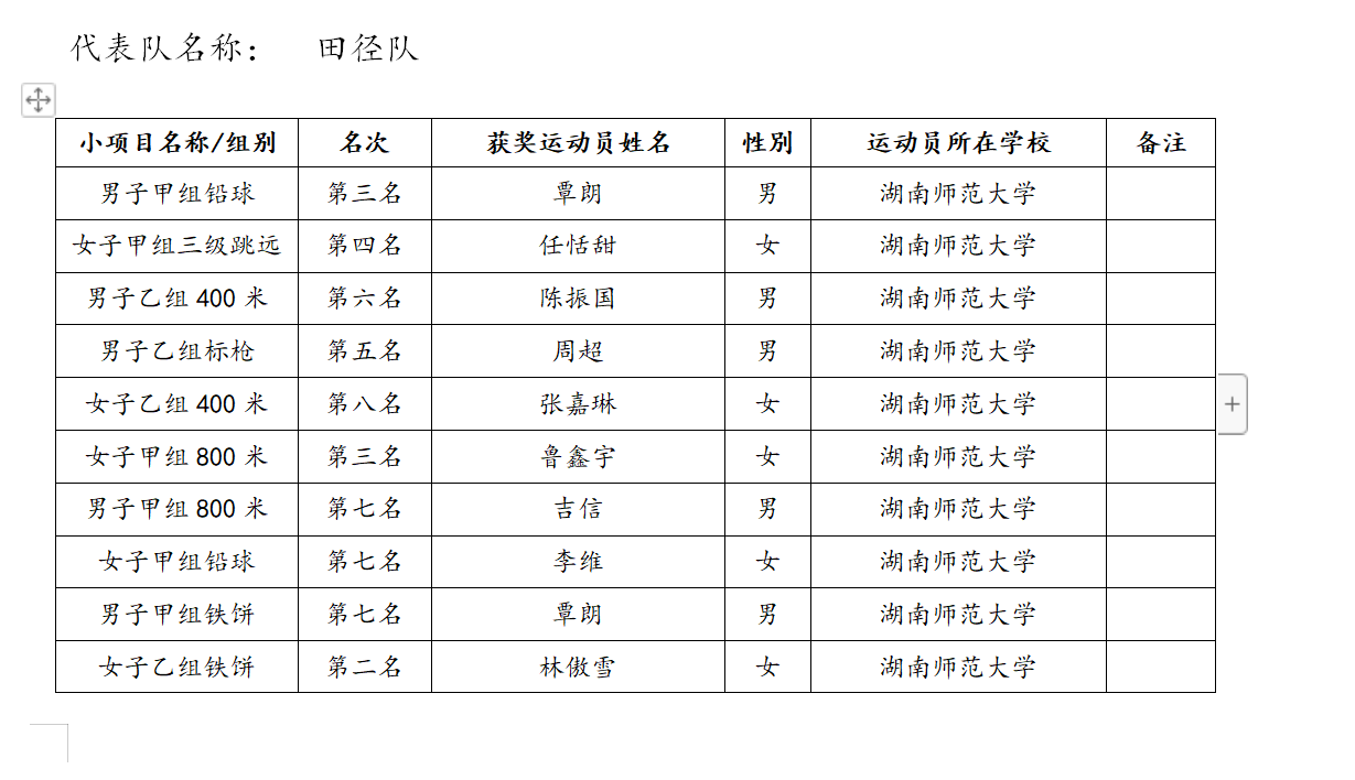3.田径队获奖情况如下: