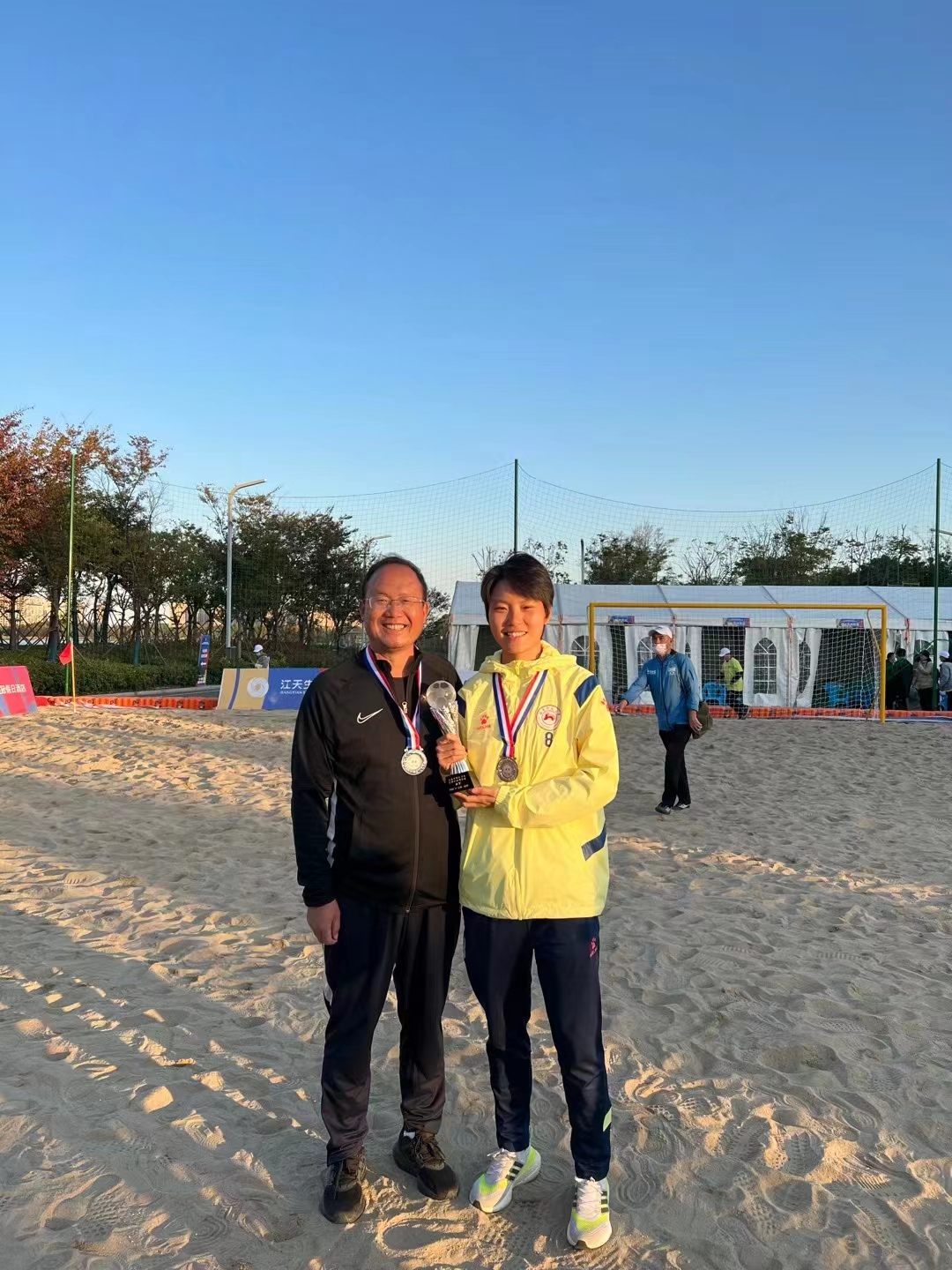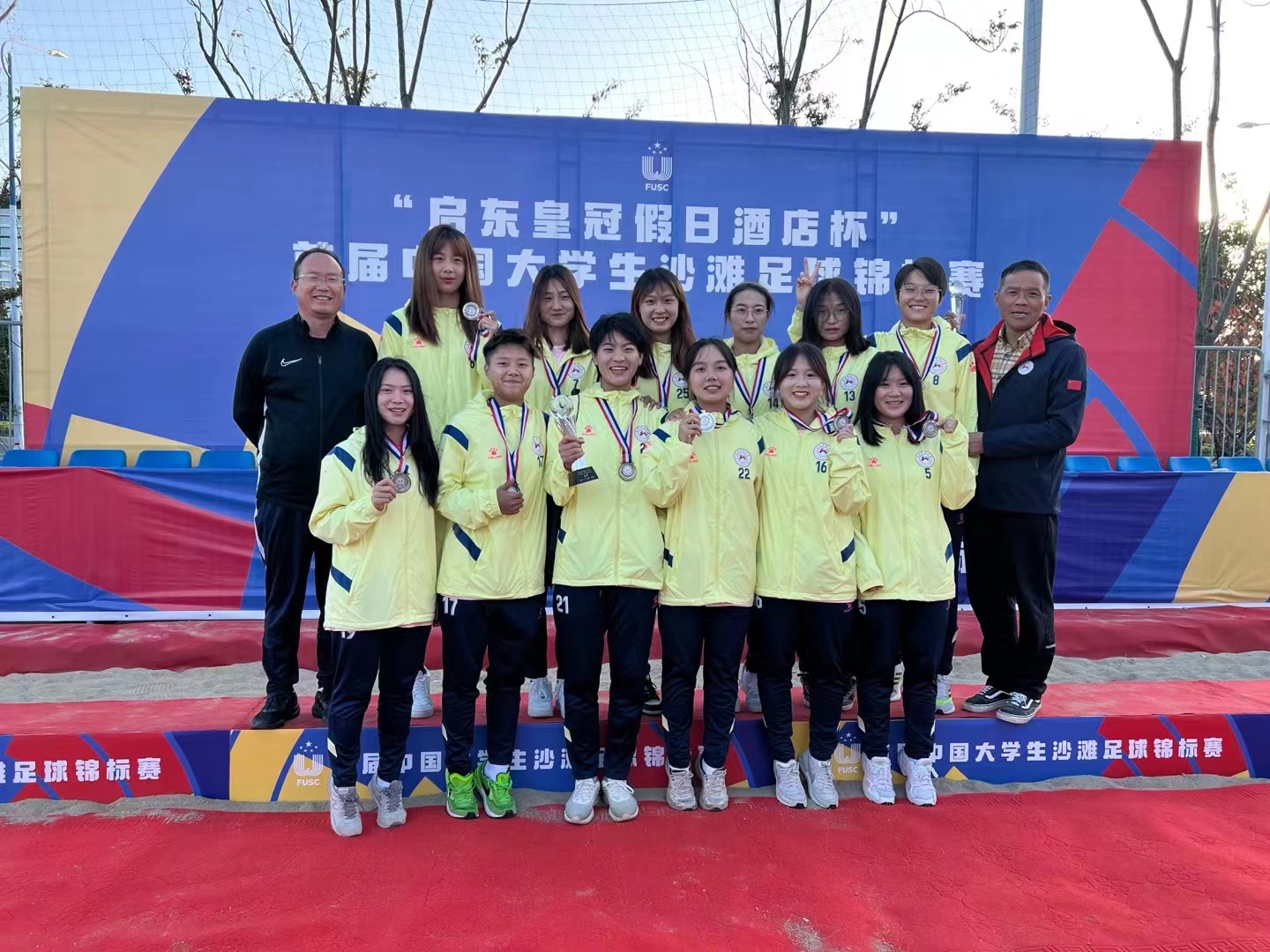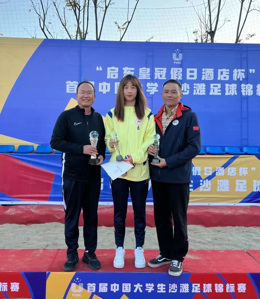 22级硕士研究生王博同学获评为“最佳运动员”,21级吉亚同学获得“最佳射手”,21级吕镒同学获得“最佳守门员”,李琼志老师获评“最佳领队”,女足主教练黄文宾教授获评为女子组“优秀教练员”,男足主教练张宇副教授获评为男子组“优秀教练员”。