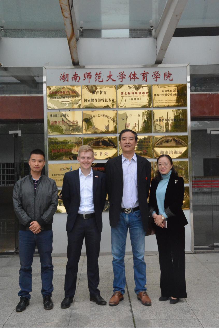 (通讯员 戴温雅 余友 向优兰)2019年11月12日,经理汤长发在鸿健楼接待来访的英国林肯郡代表团成员,中英足球中心主任罗鹏飞(Rob Avery-Phipps)、林肯郡中国事务顾问林铁东等一行,校国际交流合作处副处长李苗陪同访问。