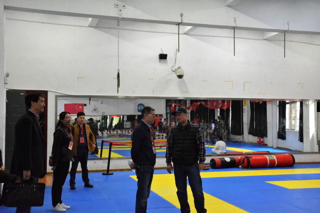 周俊武一行逐一深入各考场视察第一批次考生考试情况,了解各考试项目尤其是体操、跆拳道等主观类项目的评分标准及考试流程,详细听取了学院负责人关于今年体育高考开考情况汇报,并不时向随行人员了解成绩电子显示屏、视频监控、风雨棚等考试设备、仪器维护、考场安全等相关情况。在总监控室视察时,他逐一查看了各考场视频监控情况,他要求工作人员务必调整好每个摄像头,真正做到监控全覆盖不留死角。