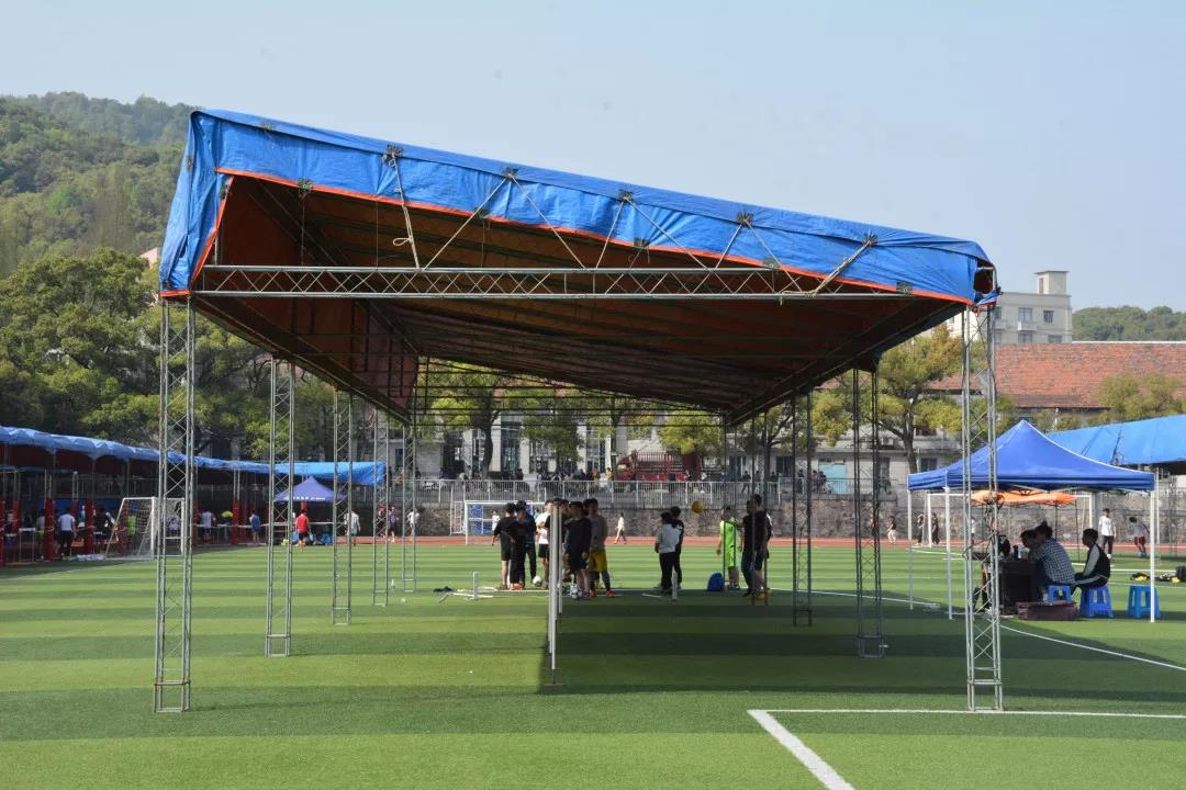 值得一提的是,由于长沙四月的天气少晴多雨,为防止考生因天气原因导致人身安全受到损害及影响考试水平的正常发挥,公司在体考正式开始前便组织工作人员在露天的足球考场和百米考场搭建了遮雨棚,并专门为考生准备了雨衣、雨具。