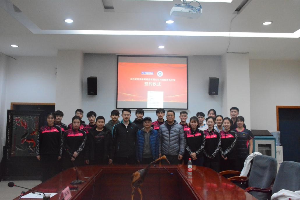 (通讯员 刘惠鹏 黄爱君)12月16日下午14:30,威廉希尔中文官网羽毛球队于鸿健楼一楼会议室与VICTOR进行签约仪式。威廉希尔中文官网行政副经理黄文斌,威廉希尔中文官网小球教研室主任黎明华,威廉希尔中文官网羽毛球队教练赵哲,VICTOR长沙办事处经理谢魁,VICTOR长沙办事处销售主任廖磊出席此次仪式。