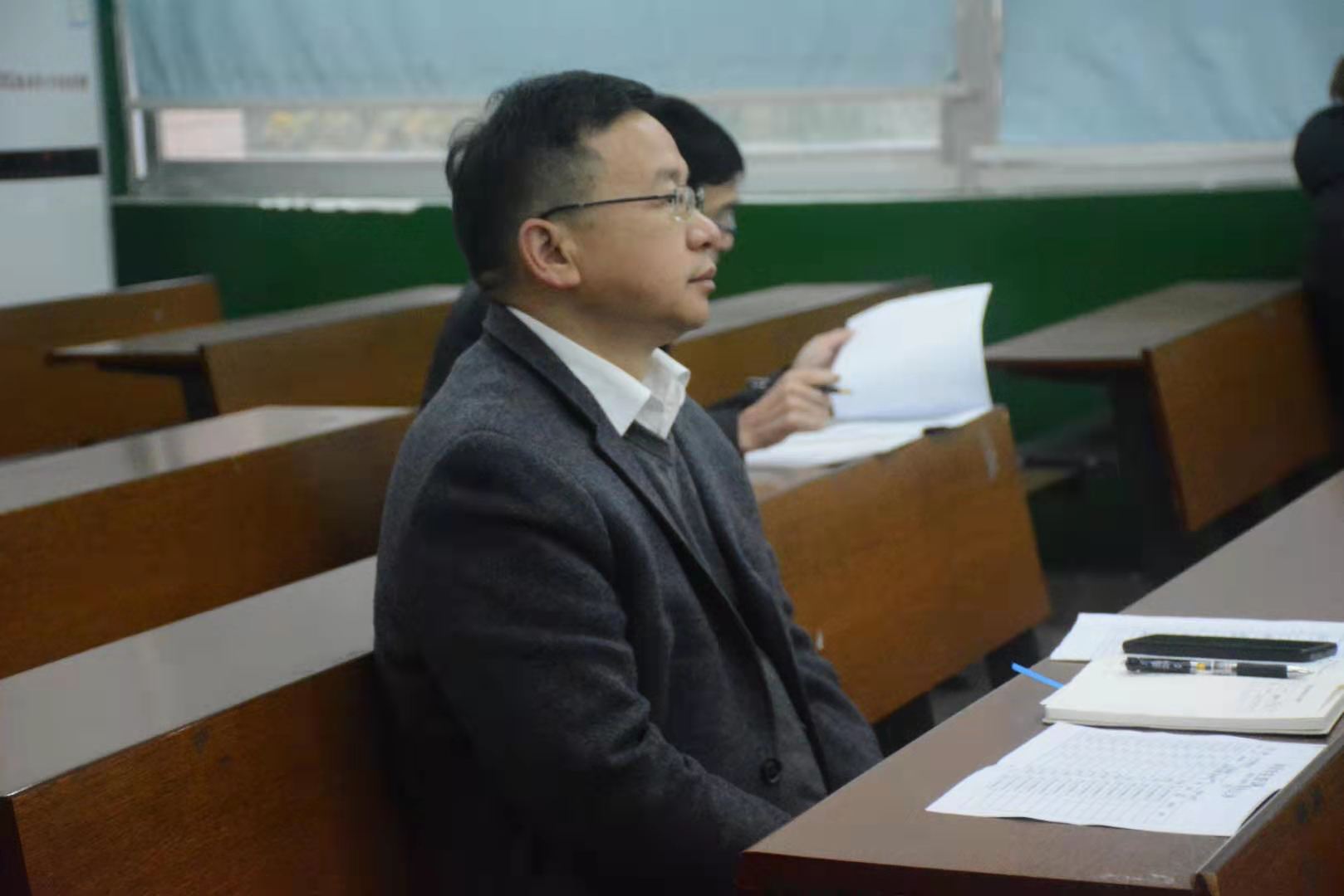 刘怀德走进课堂,认真旁听公司教师授课,并且仔细做好听课笔记。在课后,刘怀德与学院师生进行了沟通与交流,就如何增进课堂上的师生交流、增强多种教学方式的转换和运用、丰富教学课件内容等方面对新进老师进行了指导,并详细询问新学期教学工作的开展情况。