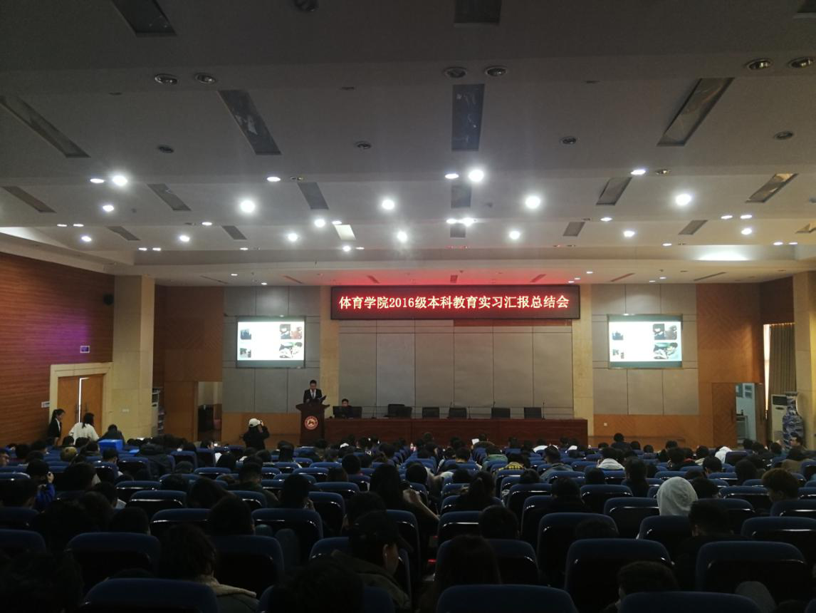 会议在全体起立,奏唱国歌、校歌开始。其次12支实习队分别进行实习汇报,汇报内容主要包含教育见习、教育实习和教育研习中所进行的教学技能练习、教学、训练与竞赛、班级管理和课外体育活动组织等工作的成果,并向大家展示了自己队伍的组织管理、队刊、教案、实习日志等各阶段的材料,各位汇报人纷纷表示在本次教育实习中收获颇丰,两个多月的模拟实习和三个月“真枪实战”的实习让他们更加自信、更加强大。