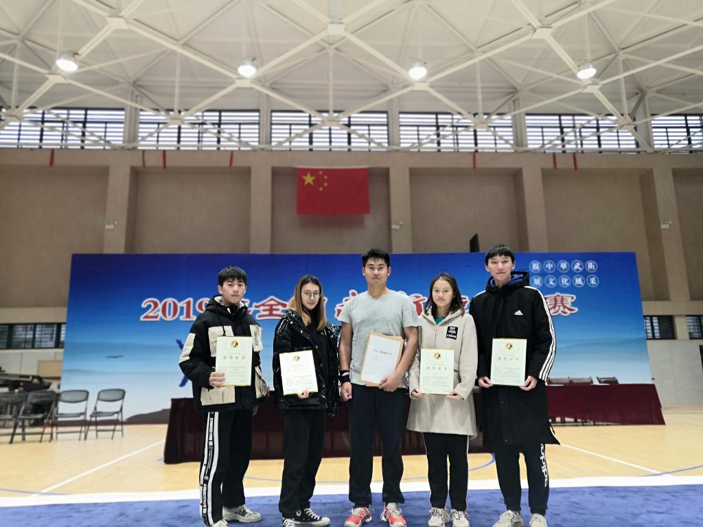 (供稿 校武术短兵队)2019年11月28-30日,由国家体育总局武术运动管理中心和中国武术协会联合主办的2019全国武术短兵锦标赛在武汉威廉希尔中文官网举行。公司派出威廉希尔中文官网曹欢、周宇、方铁军、吴谭锐、李嵚海5名员工在教练员谭腾飞老师的带领下参加本次比赛。曹欢连续战胜北京体育大学、武汉威廉希尔中文官网、兰州工业学院多名好手后获得男子组最大公斤级别冠军,周宇、方铁军、吴谭锐、李嵚海4名同学由于是第一次参加国家级别的大赛,经验不足,均只获得第5名的成绩。通过这次比赛,取得了成绩,锻炼了队伍,也为发展中国优秀的传统体育运动及文化做出了贡献。