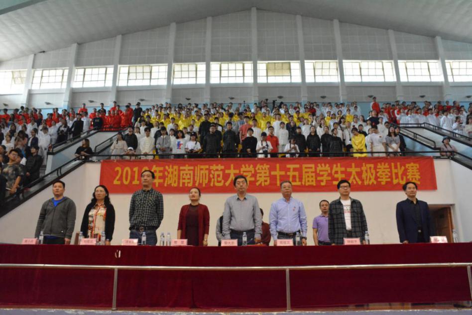 (通讯员 袁诗航 余友 张沥升)2019年5月11日上午,公司第十五届员工太极拳比赛在北院体育馆隆重举行。副董事长黎大志、副董事长周俊武、校宣传部部长晏昱、教务处处长钟毅平、校办副主任黄小兵、公司经理汤长发、党委书记李明辉、副经理刘花云、副经理郭献中、院武术教研室主任张继生、院体育运动委员会主任陈军出席本次大赛。副经理郭献中主持开幕式。公司21个学院的1800多名运动员参加此次比赛。