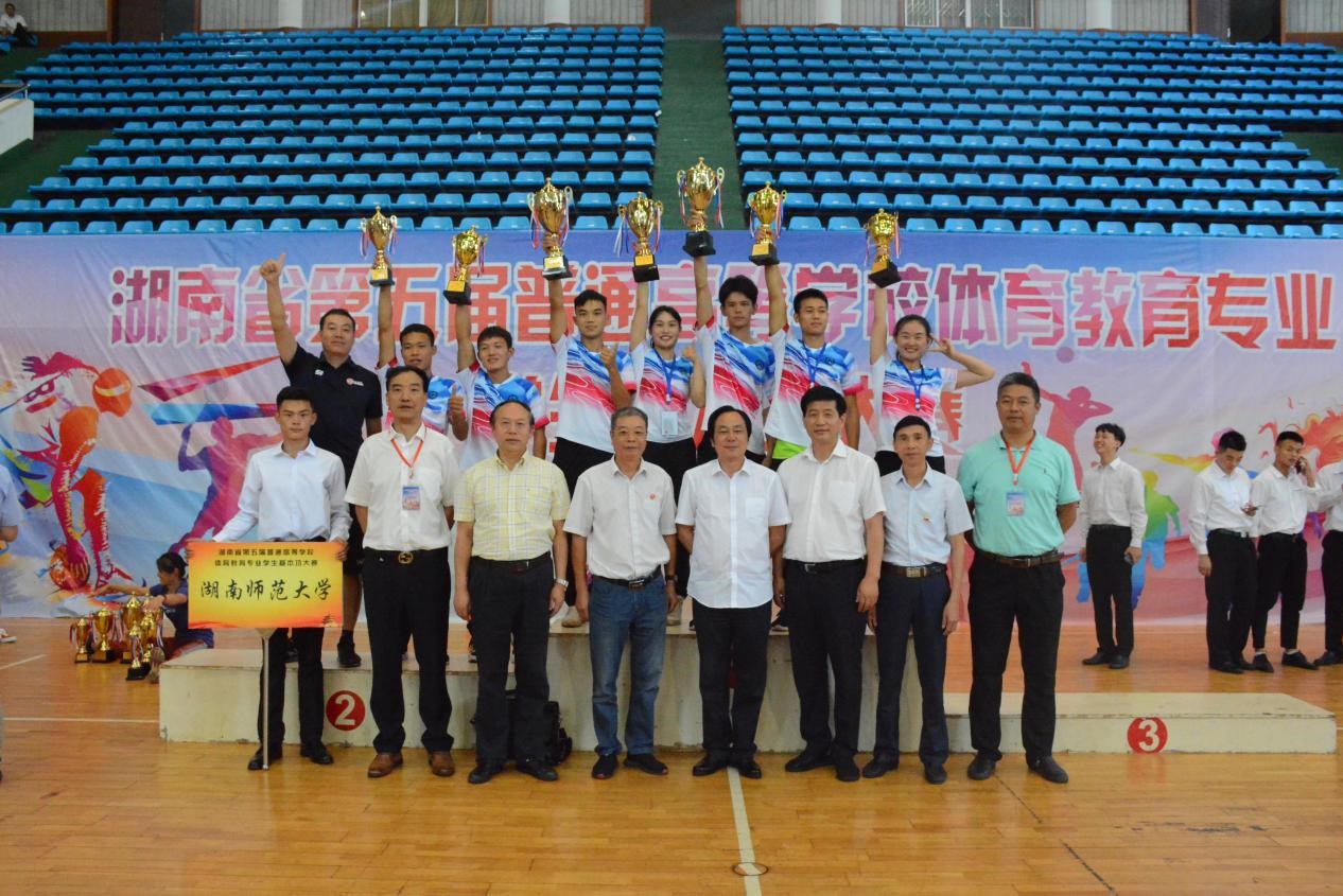 (通讯员 陈俊豪)9月30日上午,湖南省第五届普通高等学校体育教育专业员工基本功大赛在公司体育馆落下帷幕,公司代表队蝉联团体总分第一。副董事长周俊武、湖南省教育厅体卫处处长彭四龙、湖南省教育厅体卫艺处二级调研员金彪、长沙师范学院副经理黄快林、湖南省高校体育教学指导委员会副主任李艳翎、湖南省高校体育教学指导委员会副主任孙洪涛、全国普通高校体育教学指导委员会委员、湖南省高校体育教学指导委员会委员汤长发、党委书记李明辉等出席开幕式。仪式由威廉希尔中文官网副经理郭献中主持。