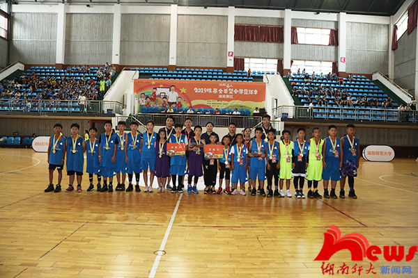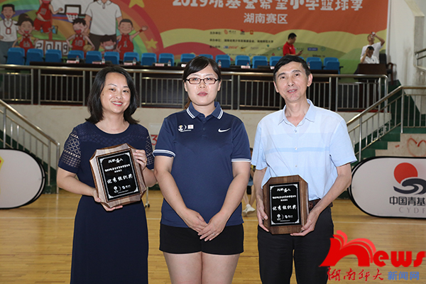 颁奖环节,团省委副书记钟娜为本次比赛获得冠军的队伍张家界永定区枫香岗中心学校、浏阳市蕉溪乡常丰完小、永州市江华县桥头铺镇完全小学、怀化市芷江县土桥镇小学颁发奖牌,并为他们颁发2019姚基金希望小学篮球季湖南赛区晋级卡。