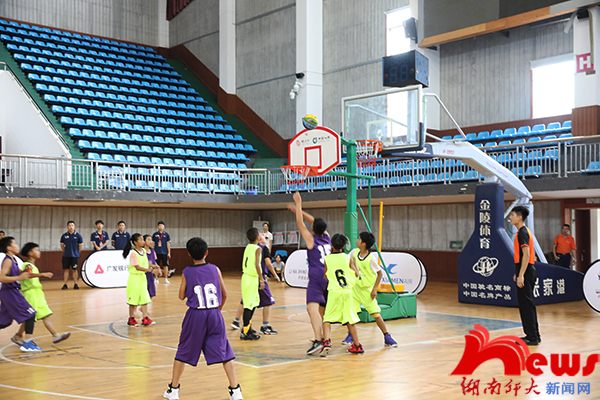 闭幕式安排了精彩的表演赛,篮球小将们扎实的篮球功底、激烈的对抗、精彩的三步上篮引起现场阵阵欢呼。在趣味投篮环节,来自湖南勇胜篮球俱乐部的两位职业球员与小朋友们进行了投篮比赛,将表演赛推向高潮。