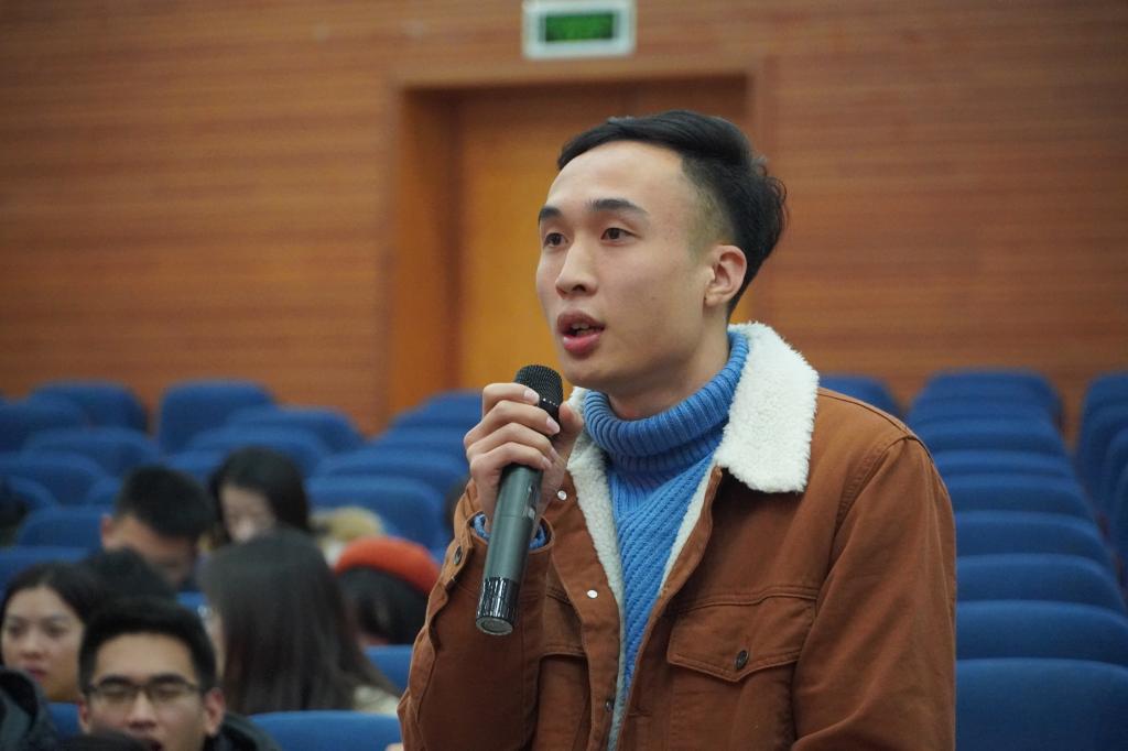 老生代表发言后,2020级新生以提问的方式与学长学姐进行互动交流,大家畅所欲言,诙谐风趣,场面甚是融洽。
