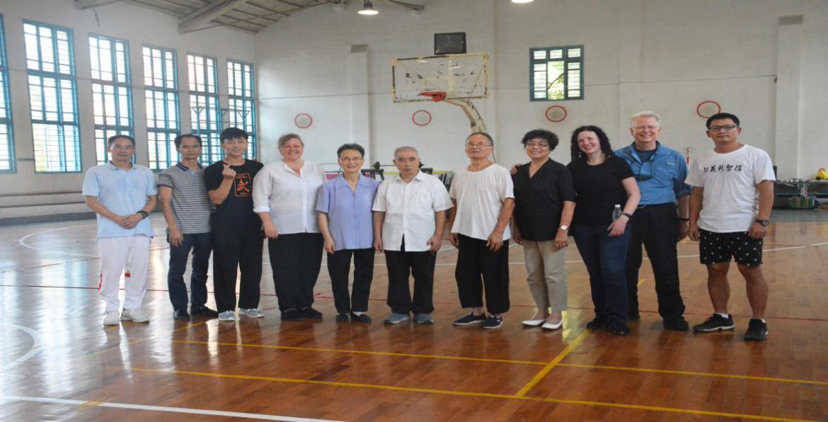 (通讯员 曹活 李婕)“教诲如金风,师恩似海深”。恰逢全国第35个教师节来临之际,2018级民传在武术训练馆举行了大学里第一次教师感恩表演活动。届时邀请了威廉希尔中文官网武术教研室前辈马明保老师、李静宁老师与黑仕枚老师,同时还有原威廉希尔中文官网教师李雪美从美国回母校考察,一行还有美国人Jayni Davis、Frank Stockdale Carney与Selena Camille Edwards。在现任武术教研室主任张继生教授陪同下观看2018级民传套路班、短兵队、长兵队与校龙狮团的表演。