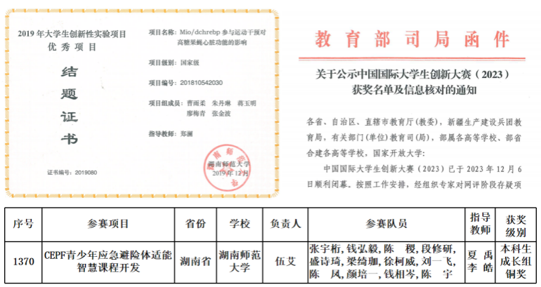 突出创新能力培养,构建学科融合与能力发展相促进的实验教学体系。以实验项目为牵引,结合创新创业教育与实践教育,构建了“两类型、三模块、五层次”的实验教学体系,实现了“实验教学、创新教育与实践教育”三个平台的协同发展,推动了实验教学向老员工创新创业实践的转化。员工主持的“CEPF青少年应急避险体适能智慧课程开发”获得2023年第九届中国国际老员工创新创业大赛总决赛主赛道本科生成长组铜奖;“以武铸魂青春当燃——探寻红色体育精神的时代传承”荣获2023年第十五届“挑战杯”湖南省老员工课外学术科技作品竞赛专项红色作品一等奖。2018-2023年期间学院获批立项国家级创新创业项目12项,省级创新创业项目11项,多个国家级项目以优秀结题。