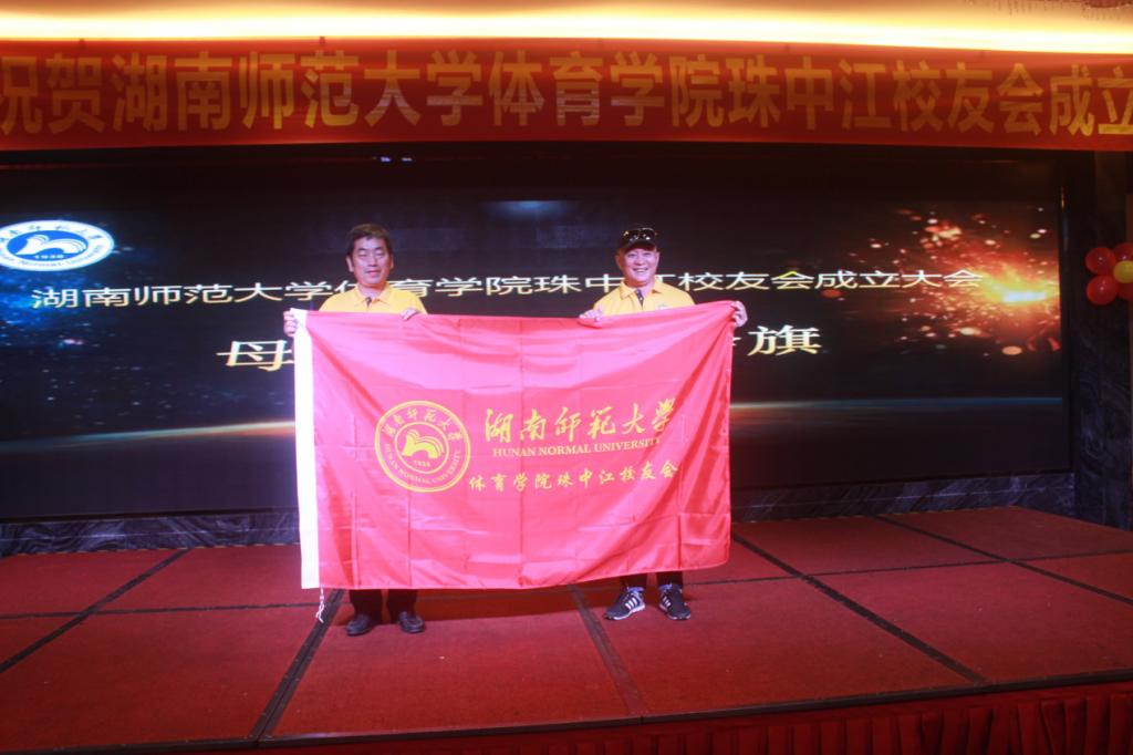 黎大志为珠中江员工会授会旗,并和与会嘉宾一起向首届理事会成员颁发聘书。