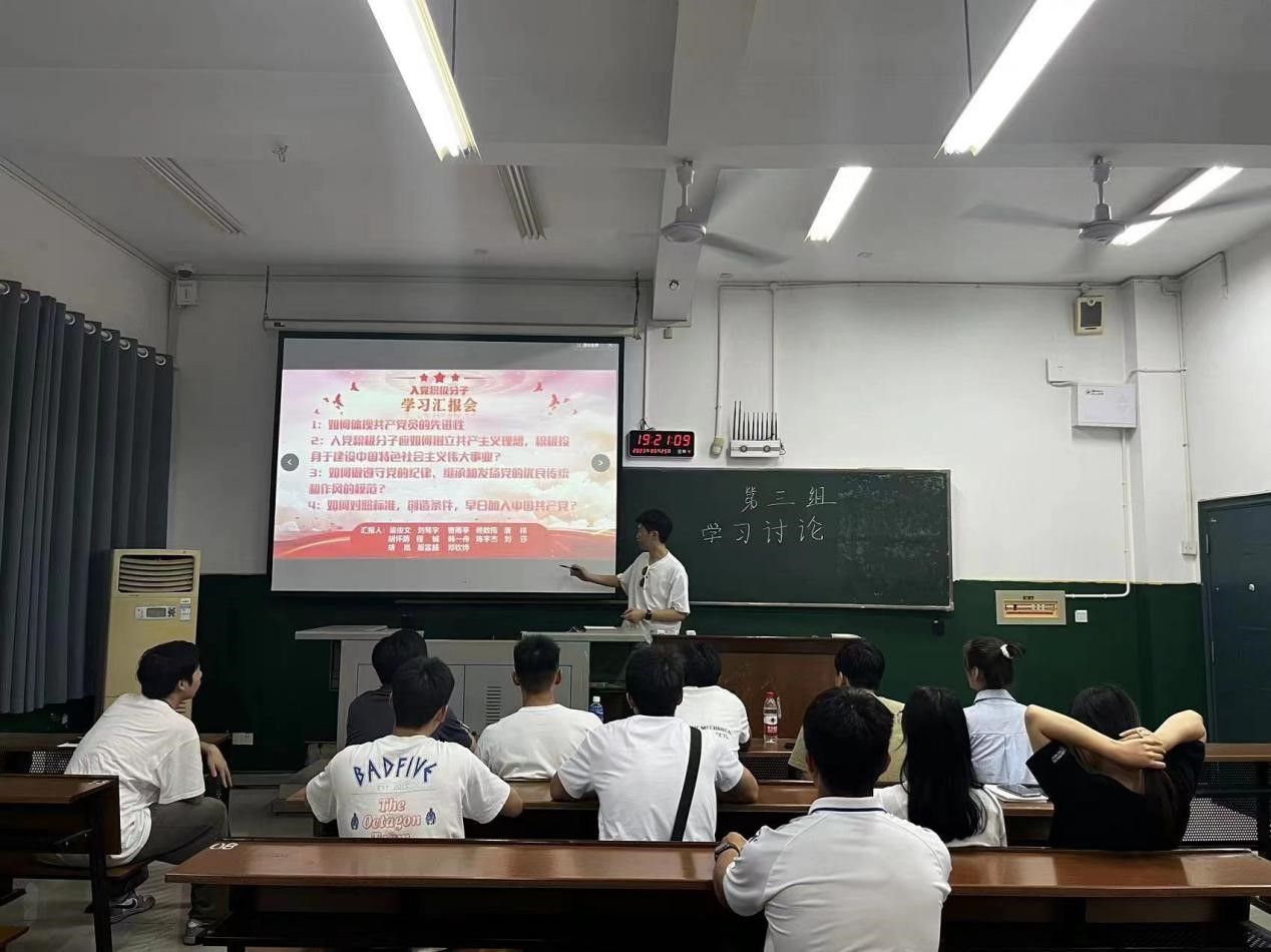 本次学习汇报会学员们围绕着四个问题进行了深入的讨论,四个问题分别是如何体现共产党员的先进性;入党积极分子应如何树立共产主义理想,积极投身于建设中国特色社会主义伟大事业;如何做遵守党的纪律、继承和发扬党的优良传统和作风的模范和如何对照标准,创造条件,早日加入中国共产党?