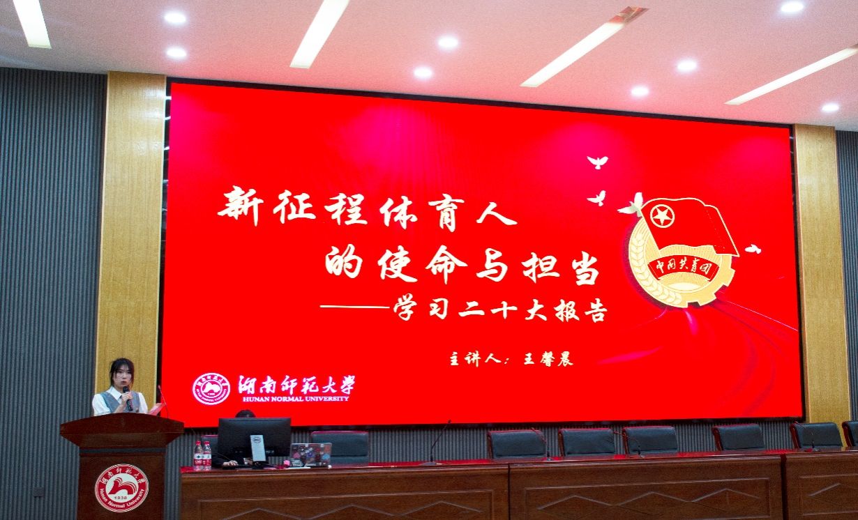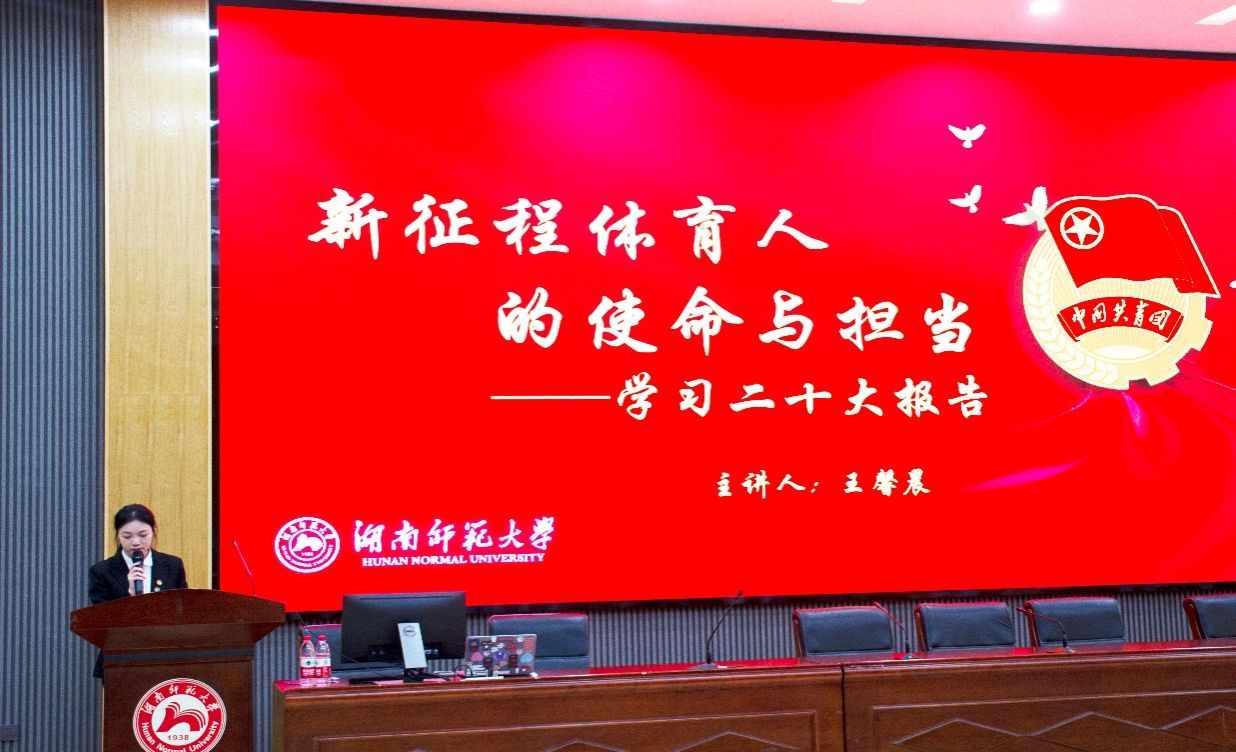 为深入贯彻党的二十大精神,引导公司员工深刻感受新时代党和国家事业取得的历史性成就,推动团员青年用好红色资源、讲好红色故事、搞好红色教育、做好红色实践。4月8日下午15:00在鸿健楼二楼多功能报告厅,在公司博士生导师郭恒涛教授和团委书记王静老师的指导下,2021级民族传统体育专业王馨晨同学结合体育专业特色展开了《新征程体育人的使命与担当—学习二十大报告》的二十大会议精神宣讲活动。