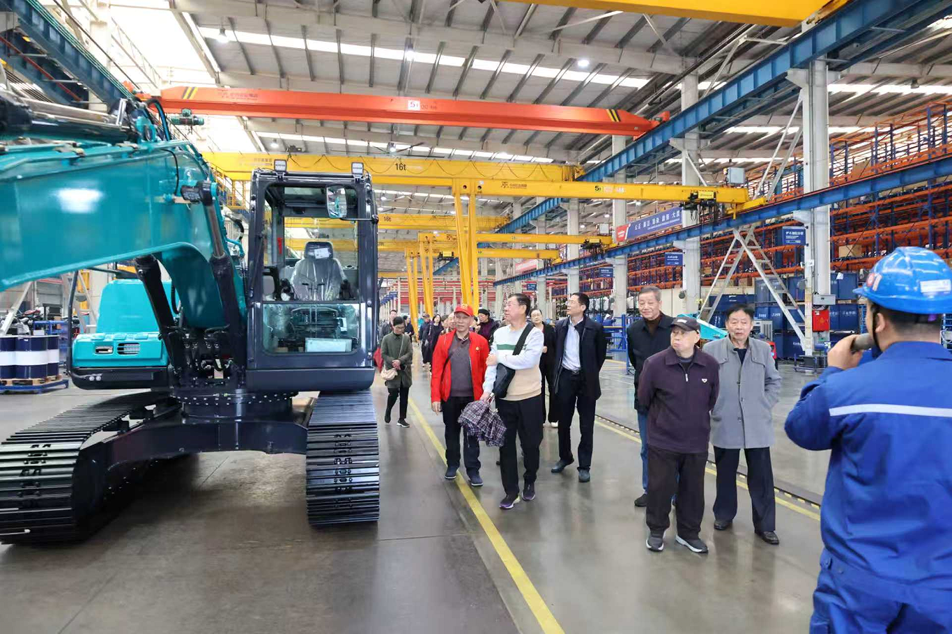 在本次活动中,退休党员们重点参观了山河智能的挖掘机装配车间。该车间正是当年习近平总书记考察时亲临指导的地方。通过实地观摩,老同志们直观感受了现代化大型企业智能化生产线的先进水平与高效管理。随后,大家还参观了公司展厅,深入了解了山河智能的发展历程、技术创新成果以及未来规划。行程虽短,但内容丰富,老同志们纷纷表示,此行大大开阔了眼界,深刻领略了新时期中国智能制造的前沿景象,切身体会到国家工业体系的飞速发展和日新月异的变化。