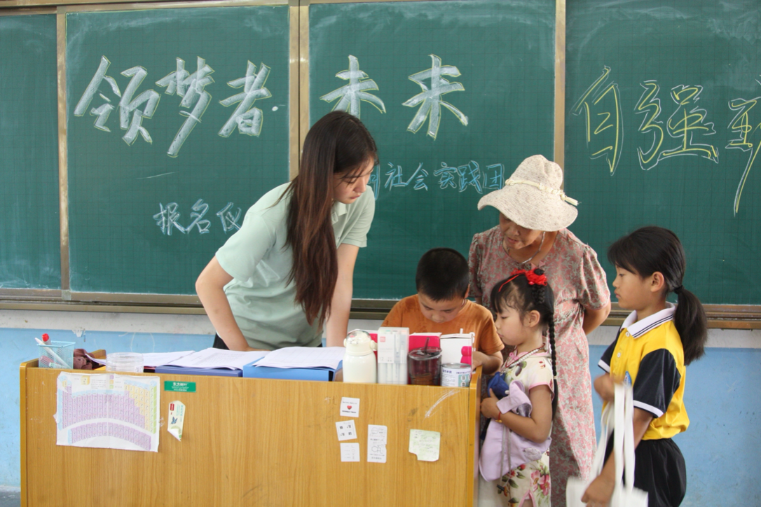 上午,“领梦者•未来”团队开启招生工作。成员分工协作,一支分队于村口、集市派发简章,向家长介绍课程,家长对团队表示欢迎与认可;另一支分队则在学校接待咨询报名者,就课程、安全等内容进行细致解答。