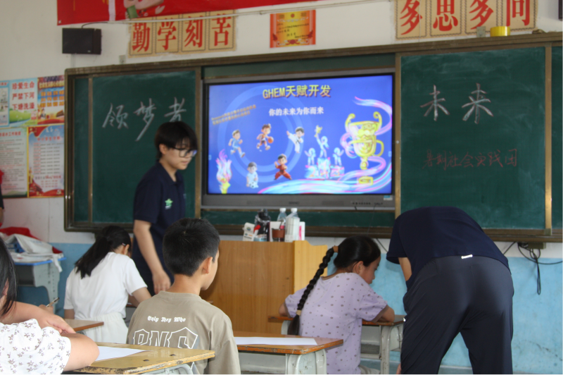 两项课题成果,以“人工智能+体育”模式推进乡村教育,促进科技与教育融合。在当地学校课堂,实践团开展“GHEM天赋开发”课程,借助可视化内容向员工展示多元发展可能,这是相关模式在乡村教育场景的落地实践。团队为近40名员工建立评估体系,后续将通过系列教学活动,结合智能理念与体育、安全教育等内容,像开展CEPF特色课程,用人工智能模拟场景教学溺水自救救助,以及急救包扎课程和突发场景训练,助力员工提升体能与应急反应、应对能力,用科技赋能乡村学子成长。